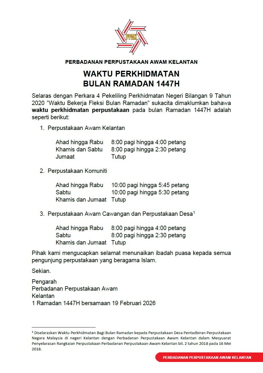 Waktu perkhidmatan bulan Ramadan 1447H