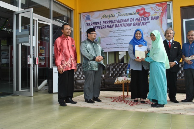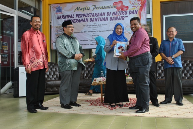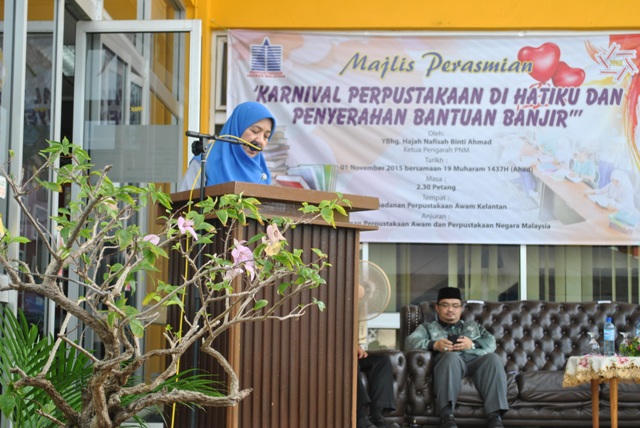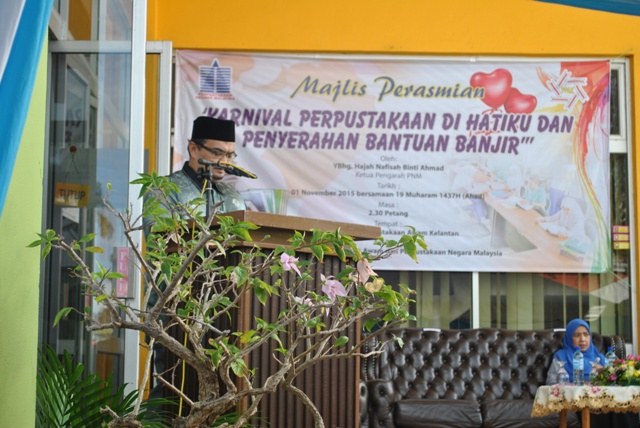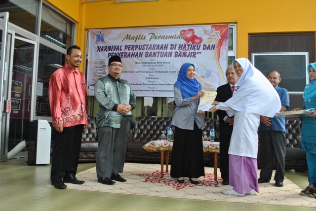Karnival Perpustakaan di Hatiku dan Penyerahan Bantuan Banjir di Perbadanan Perpustakaan Awam Kelantan telah diadakan di Perbadanan Perpustakaan Awam Kelantan pada 01 November 2015.